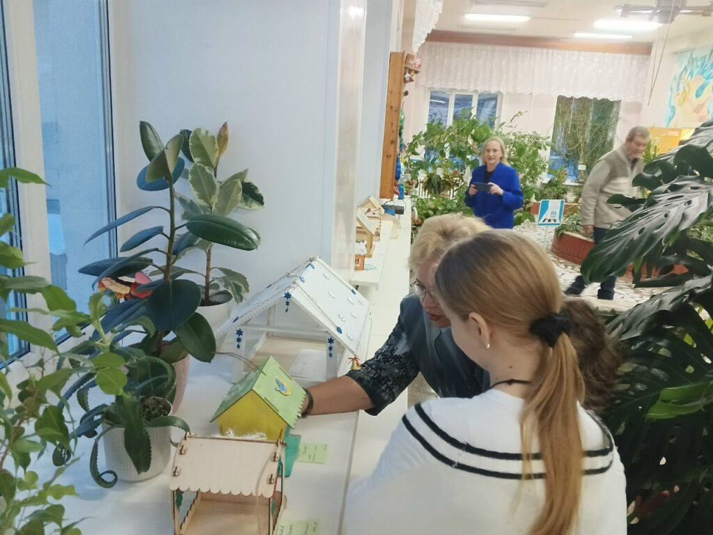 Воспитанники детского сада совместно с родителями и воспитателями оформили выставку кормушек, предоставленных на конкурс.